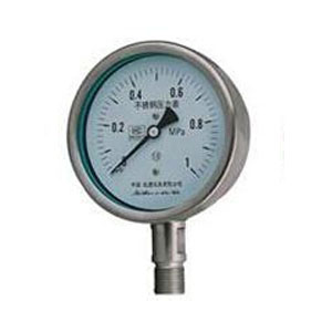 productmiaoshu:产品说明:1、概述 该系列压力表的零件采用耐腐蚀的不锈钢及耐腐蚀的合金材料制成,使仪表具有良好的耐腐蚀性能,可广泛应用于石油、化工、矿山、机械、电力及食品行业。直接测量不结晶体,有腐蚀性的气体、液体的