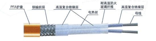 绝缘层和护套层均采用四氟乙烯—全氟烷基乙烯醚共聚物(简称PFA)挤塑而成,能在260℃温度下长期使用。